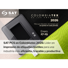 SAT pcs en Colombiatex 2026: Líder en impresión de etiquetas textiles para una industria más eficiente, trazable y productiva